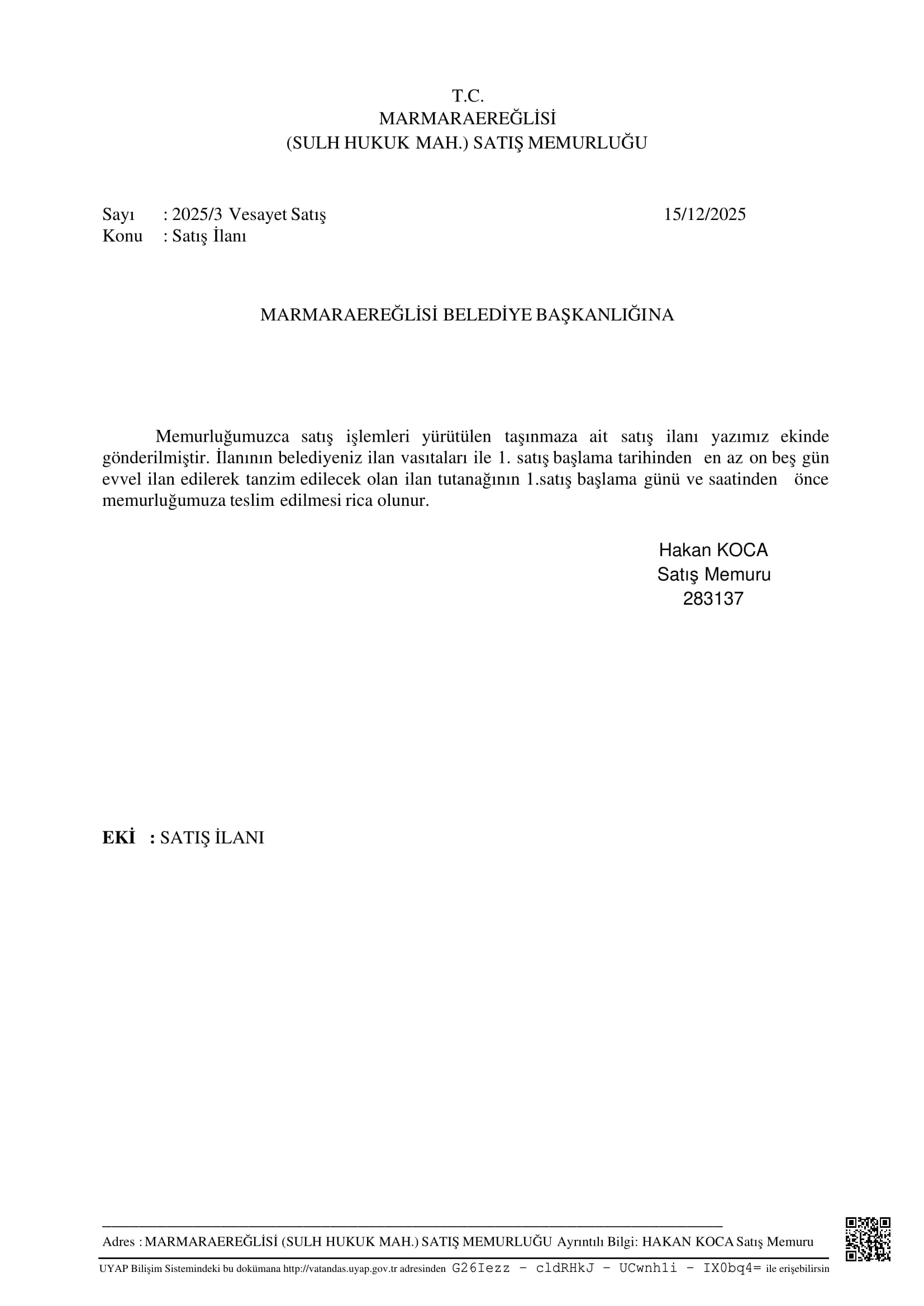 Satış İlanı