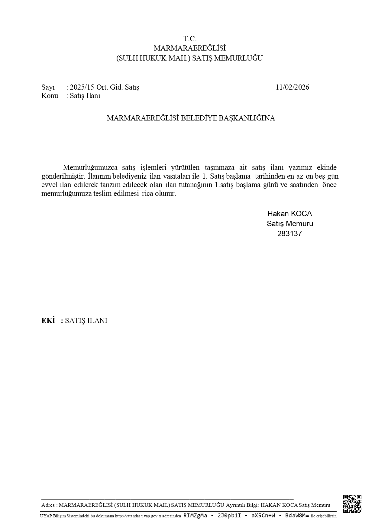 Satış İlanı
