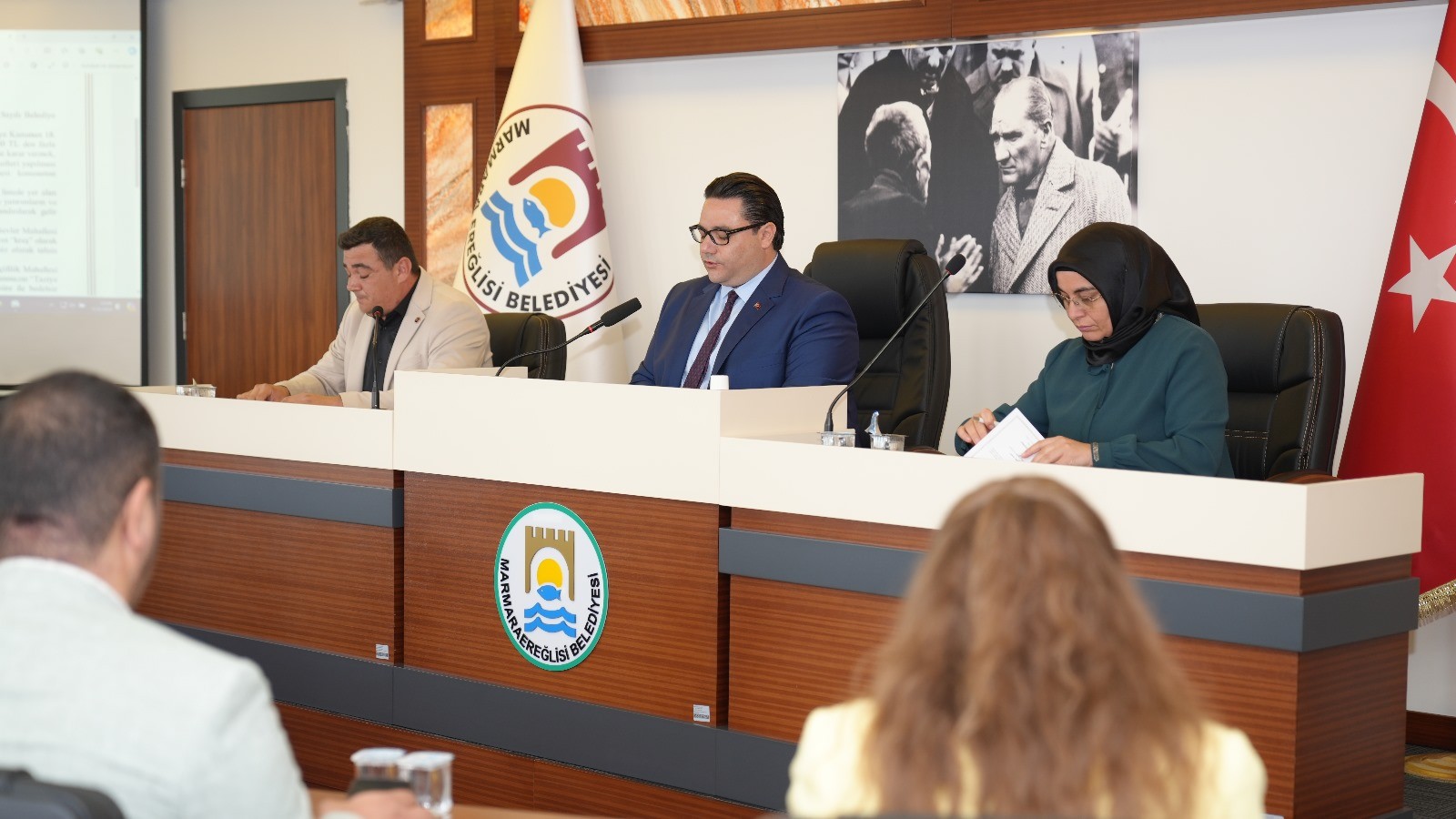 Marmaraereğlisi Belediye Meclisi 2024 Ekim Ayı Olağan Meclis Toplantısı 2. Birleşimini Ulu Önder Gazi Mustafa Kemal Atatürk, silah arkadaşları ve tüm şehitlerimizin manevi huzurunda saygı duruşu ve istiklal marşı okunmasıyla başladı. Meclis toplantısını Marmaraereğlisi Belediye Başkanı M. Onur Bozkurter’in yönetiminde gerçekleştirdi. Belediye meclis salonunda düzenlenen toplantıda, komisyonlara aktarılan gündem maddeleri oylanarak onaylandı. Alınan kararların ilçemize ve bölgemize hayırlara vesile olmasını dileriz.
