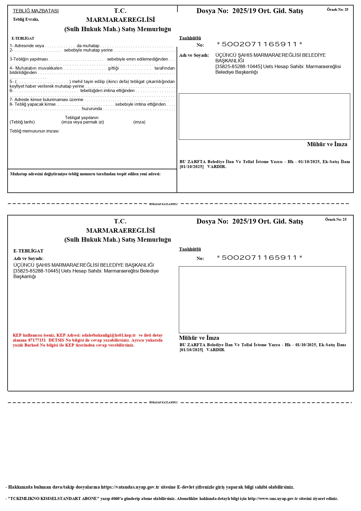 2025 YILI EVSEL KATI ATIK TOPLAMA TAŞITMA VE BERTARAFI ÜCRETİ