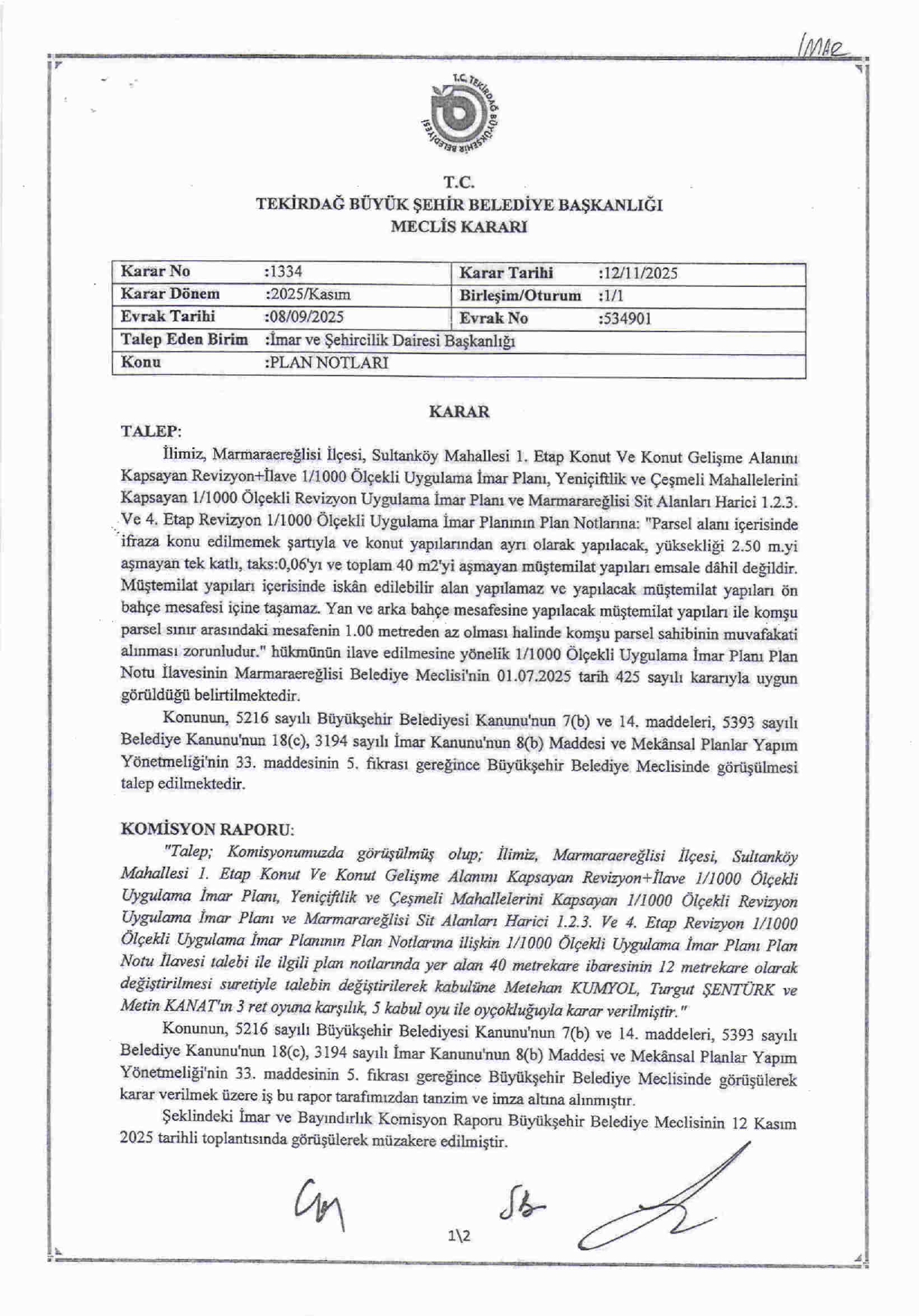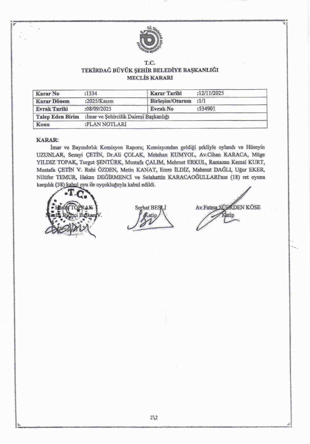 2025 YILI KASIM AYI OLAĞAN MECLİS KARARLARI