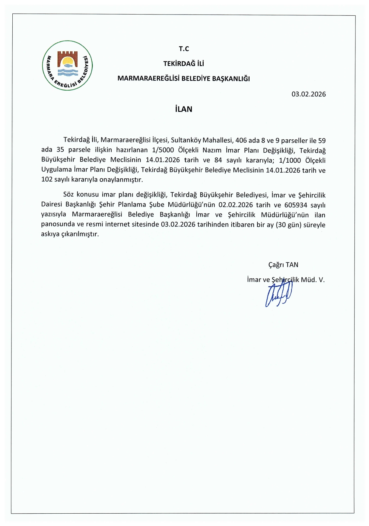 2026 YILI OCAK AYI OLAĞAN MECLİS KARARLARI