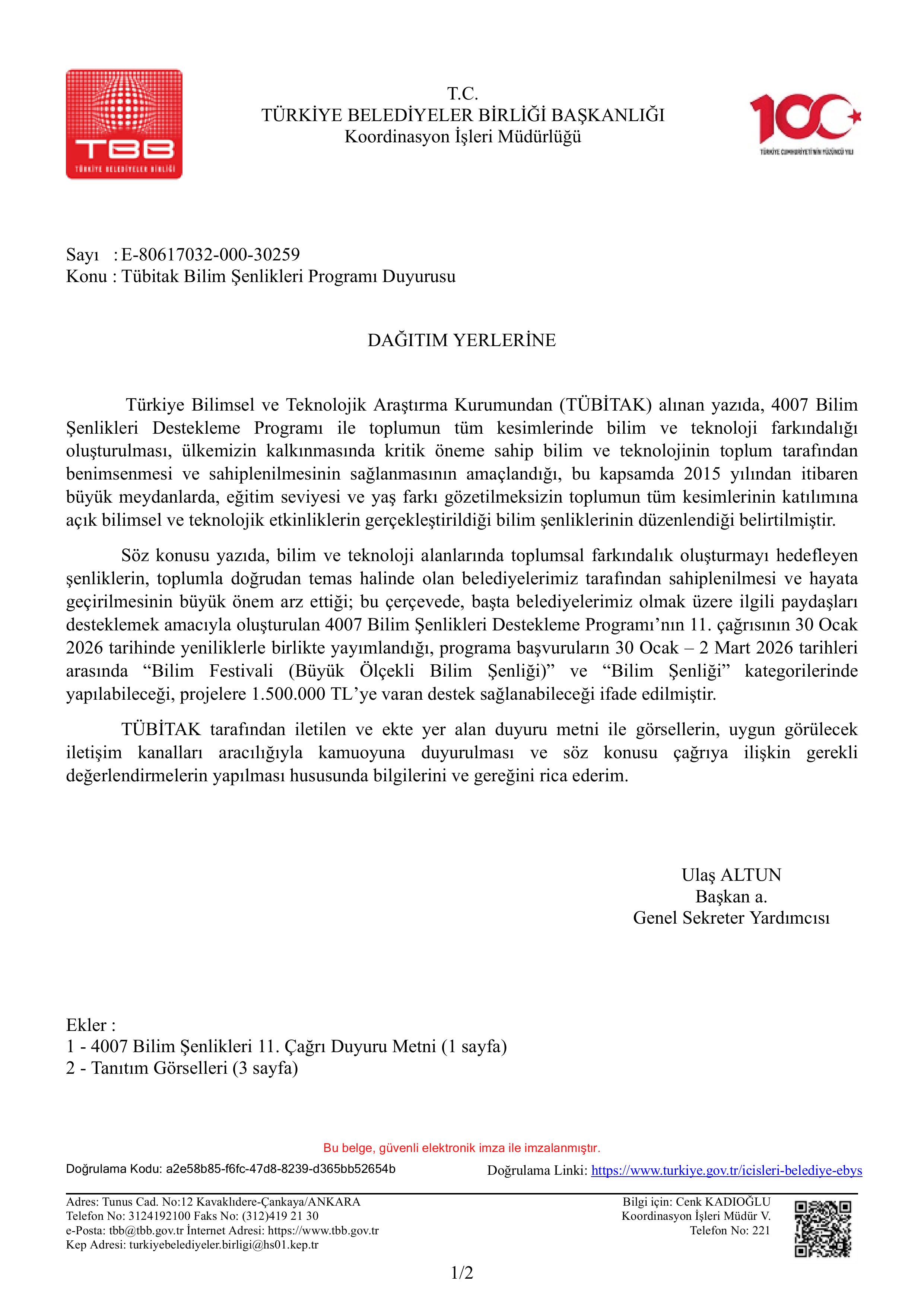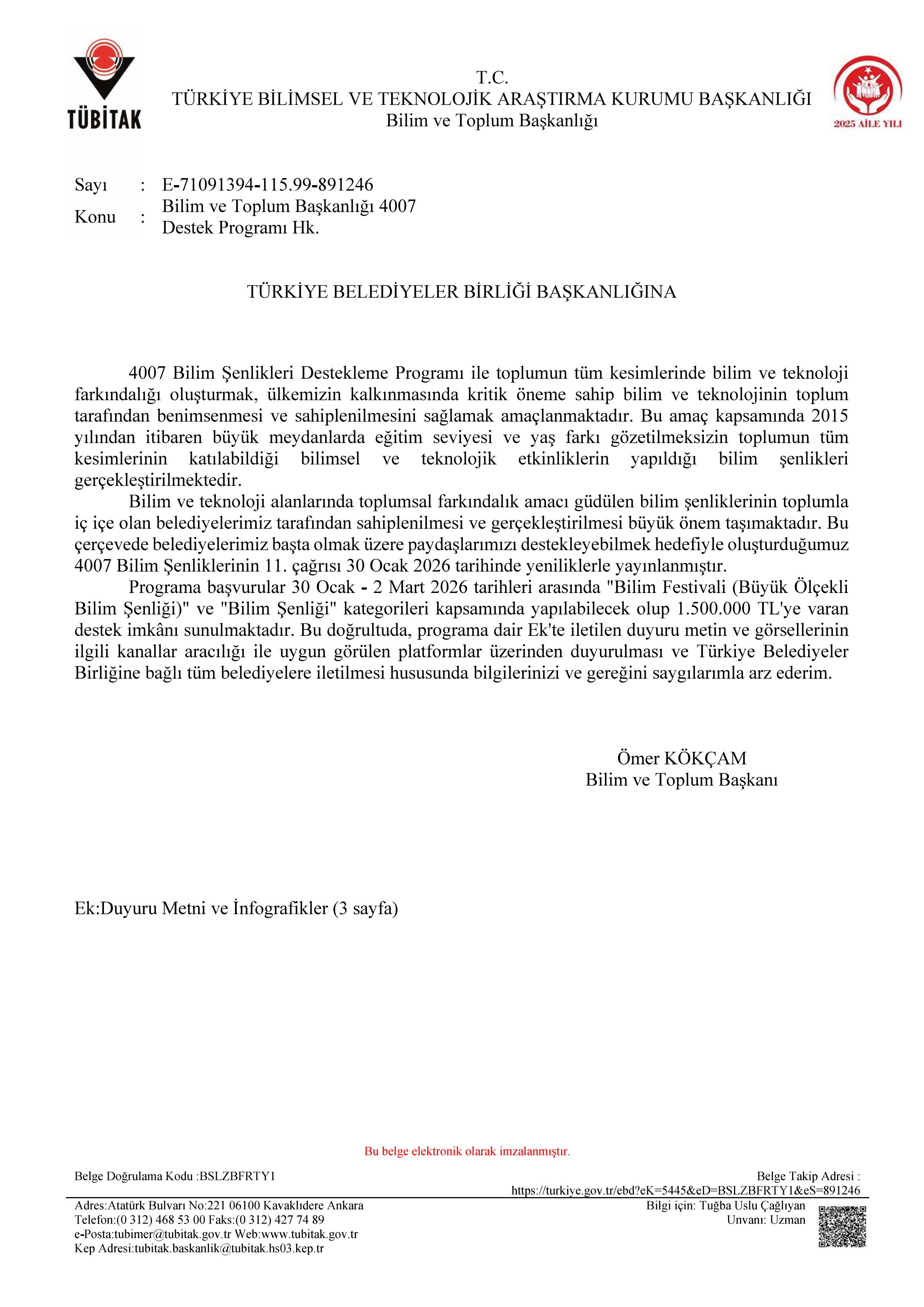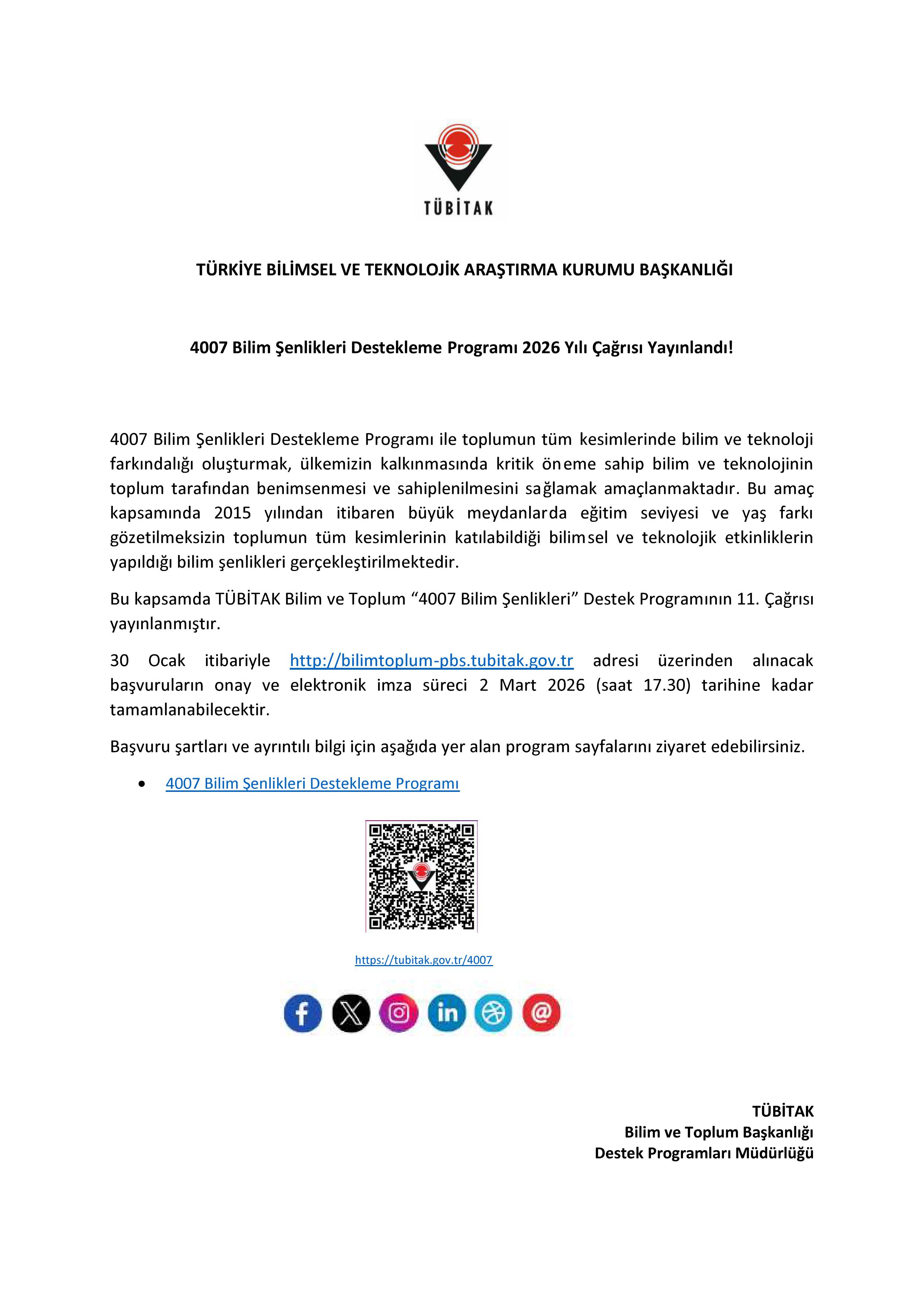 BİLİM VE TEKNOLOJİ BAŞKANLIĞI DESTEK PROGRAMI HK