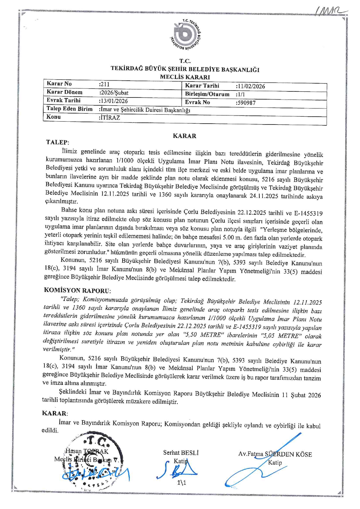 2026 YILI OCAK AYI OLAĞAN MECLİS KARARLARI